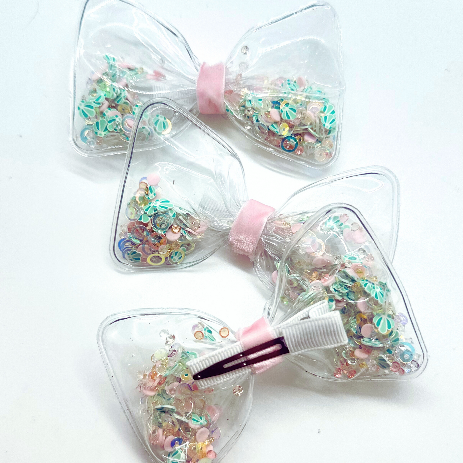 Add a little sparkle and fun to every hairstyle with our Shaker Hair Bows! Each bow is filled with shimmering sequins, glitter, or confetti that move and sparkle with every step. Designed for comfort and durability, these bows stay put while adding that magical touch your little one will love. Perfect for birthdays, parties, playdates, and everyday sparkle!
